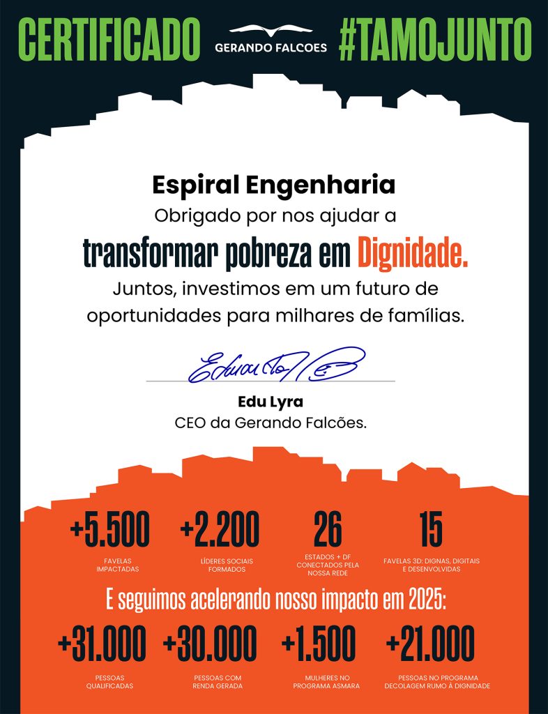 O Grupo Espiral firmou uma importante parceria com a Gerando Falcões, organização focada na transformação social e na promoção da dignidade em comunidades de todo o país.